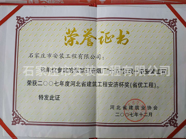 2007年度河北省建筑工程安濟杯獎(省優工程)